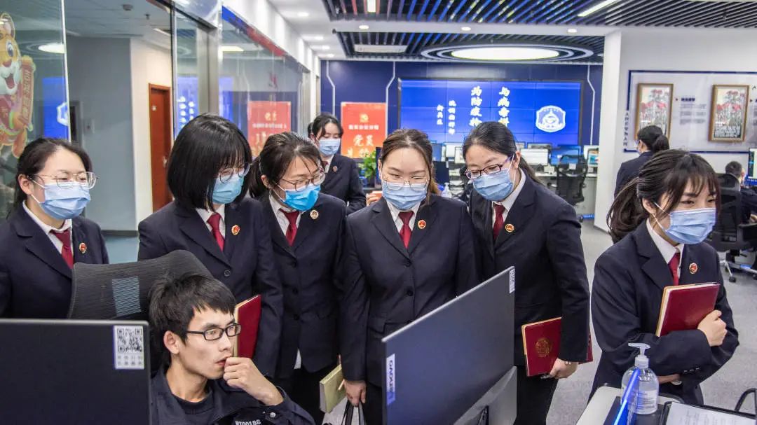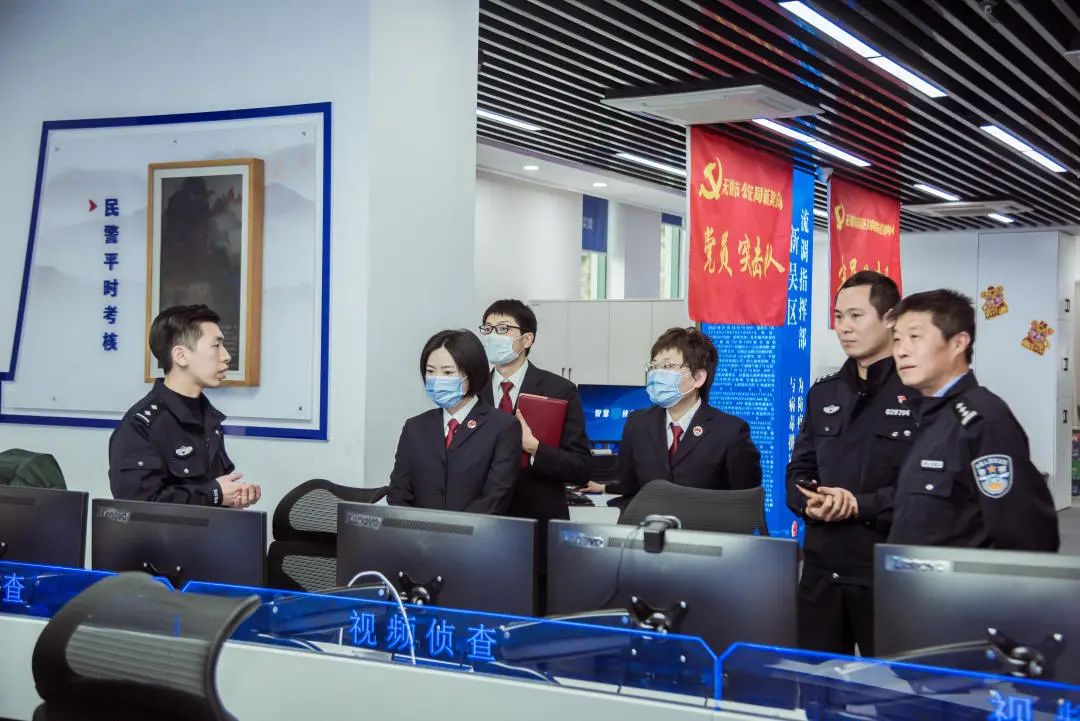 新吴区检察院刑事检察干警首先参观了新吴分局智慧侦查中心,听取了刑警大队线索研判等智慧侦查方式的介绍。