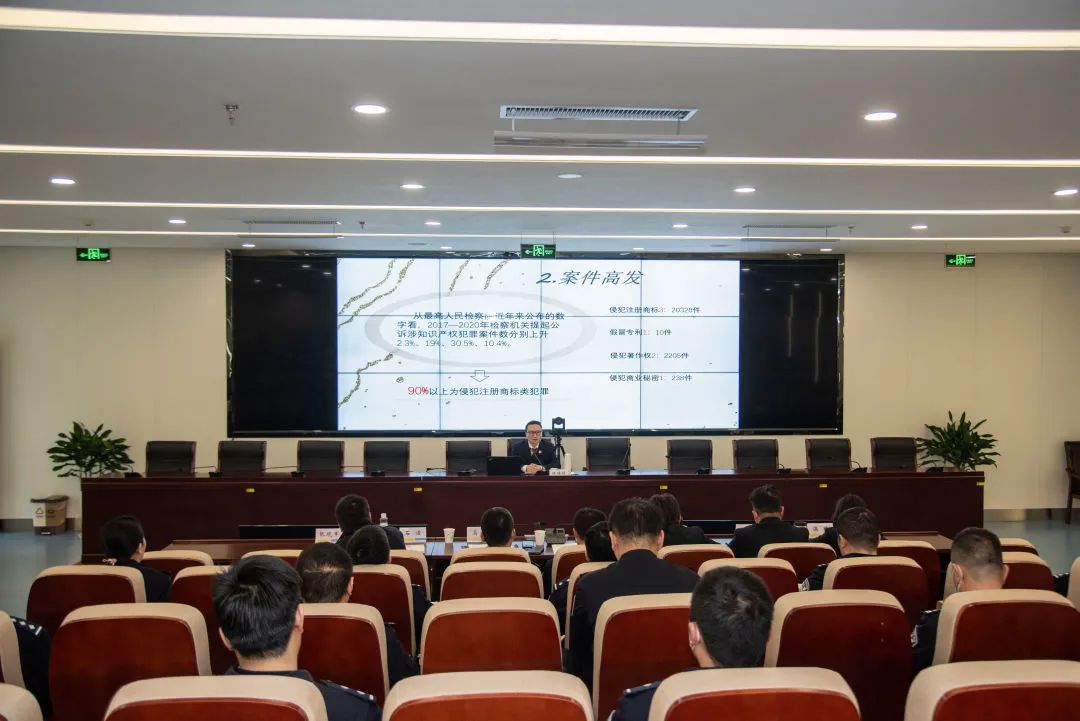 参观学习结束后,新吴区检察院与新吴分局联合举办小课堂,由第一检察部员额检察官储铭铭同志以侵犯注册商标类犯罪疑难问题解析为题,从该类犯罪的现状、权利基础的审查、犯罪行为的证明和审查、侵权责任的认定等四个方面讲授。